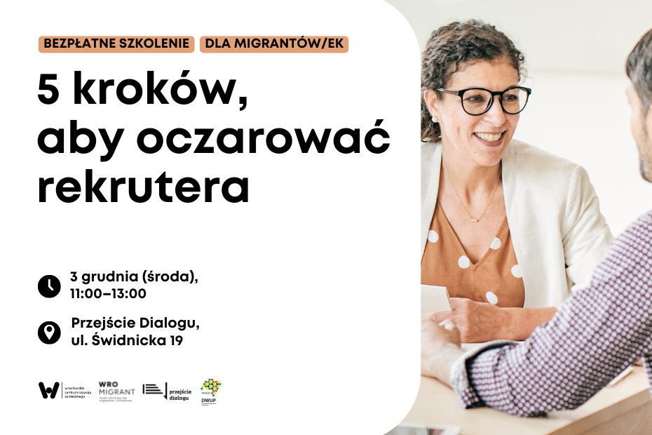Wraz z ekspertkami z Wojewódzkiego Urzędu Pracy we Wrocławiu zapraszamy na praktyczne warsztaty, podczas których skupimy się na kluczowych elementach skutecznej autoprezentacji w procesie rekrutacyjnym.