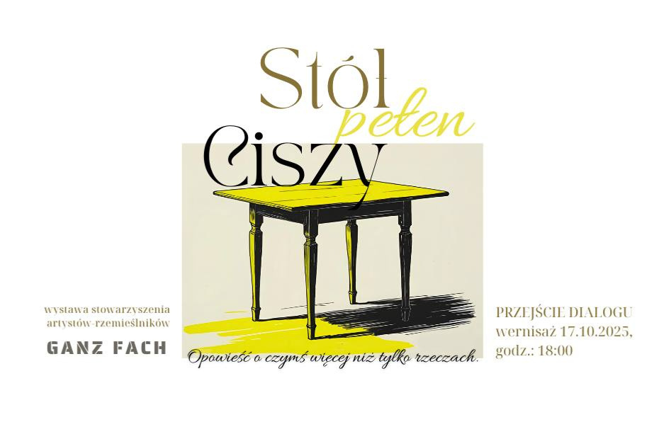 Od 17 października w Przejściu Dialogu będzie można oglądać nową wystawę przygotowaną przez Stowarzyszenie GANZ FACH. „Stół pełen ciszy” to opowieść o czymś więcej niż tylko rzeczach – o pracy rąk, skupieniu, uważności i estetyce, która wyrasta z codzienności. Na wystawie spotykają się różne techniki – ceramika, tkactwo, patchwork, kaligrafia, moda – i różne wrażliwości. Sześciu twórców i twórczyń z GANZ FACH pokazuje, że przedmioty użytkowe mogą stać się dziełami… Czytaj dalej »„Stół pełen ciszy” – wystawa Stowarzyszenia GANZ FACH w Przejściu Dialogu
