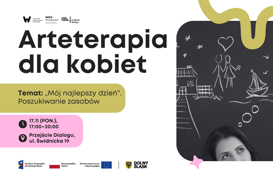 Zapraszamy na kolejną sesję arteterapii dla kobiet! Czym się zajmiemy? Zwizualizujemy dzień, w którym czujemy się szczęśliwi i spełnieni. Wykonamy artystyczne ćwiczenie pomagające uświadomić sobie własne zasoby i źródła wsparcia. Zbadamy, jak tworzyć „małe radości” nawet w trudnych warunkach. Podzielimy się pomysłami na to, co pomaga nam odnajdywać radość w życiu. Zakończymy spotkanie ćwiczeniem utrwalającym pozytywny nastrój. Uwaga! Wypełnienie formularza nie gwarantuje udziału w zajęciach. Wymagana jest rejestracja w projekcie… Czytaj dalej »Arteterapia dla kobiet
