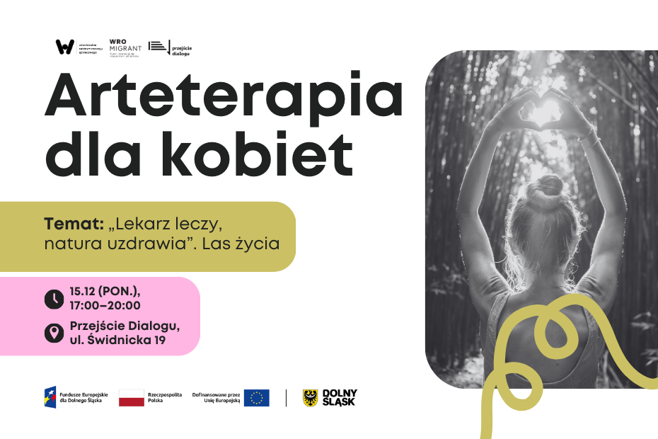 Dołącz do sesji arteterapii, podczas której podczas której zgłębimy relację człowieka z naturą i zanurzymy się w metaforyczny „las życia”. Uwaga! Wypełnienie formularza nie gwarantuje udziału w zajęciach. Wymagana jest rejestracja w projekcie „Od adaptacji do integracji — wsparcie obywateli państw trzecich w procesie integracji międzykulturowej we Wrocławiu” (FEDŚ). Zapoznaj się ze szczegółami tutaj. O pierwszeństwie udziału w zajęciach decyduje kolejność wypełnienia papierowego formularzu rekrutacyjnego w Przejściu Dialogu. Skontaktujemy się z… Czytaj dalej »Arteterapia dla kobiet