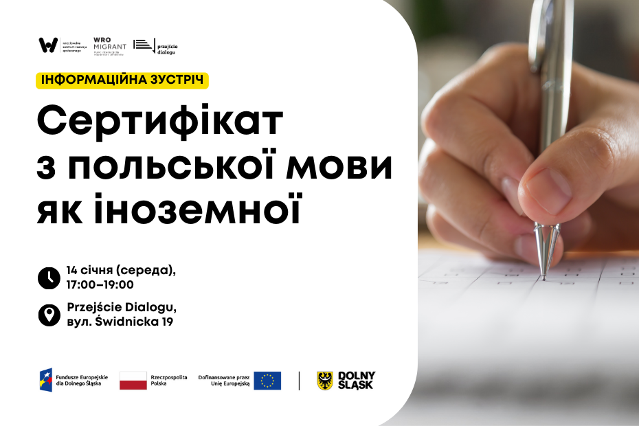 Заповнення форми не гарантує участі у зустрічі. Необхідна реєстрація в проєкті «Від адаптації до інтеграції — підтримка громадян третіх країн у процесі міжкультурної інтеграції у Вроцлаві» (FEDŚ).